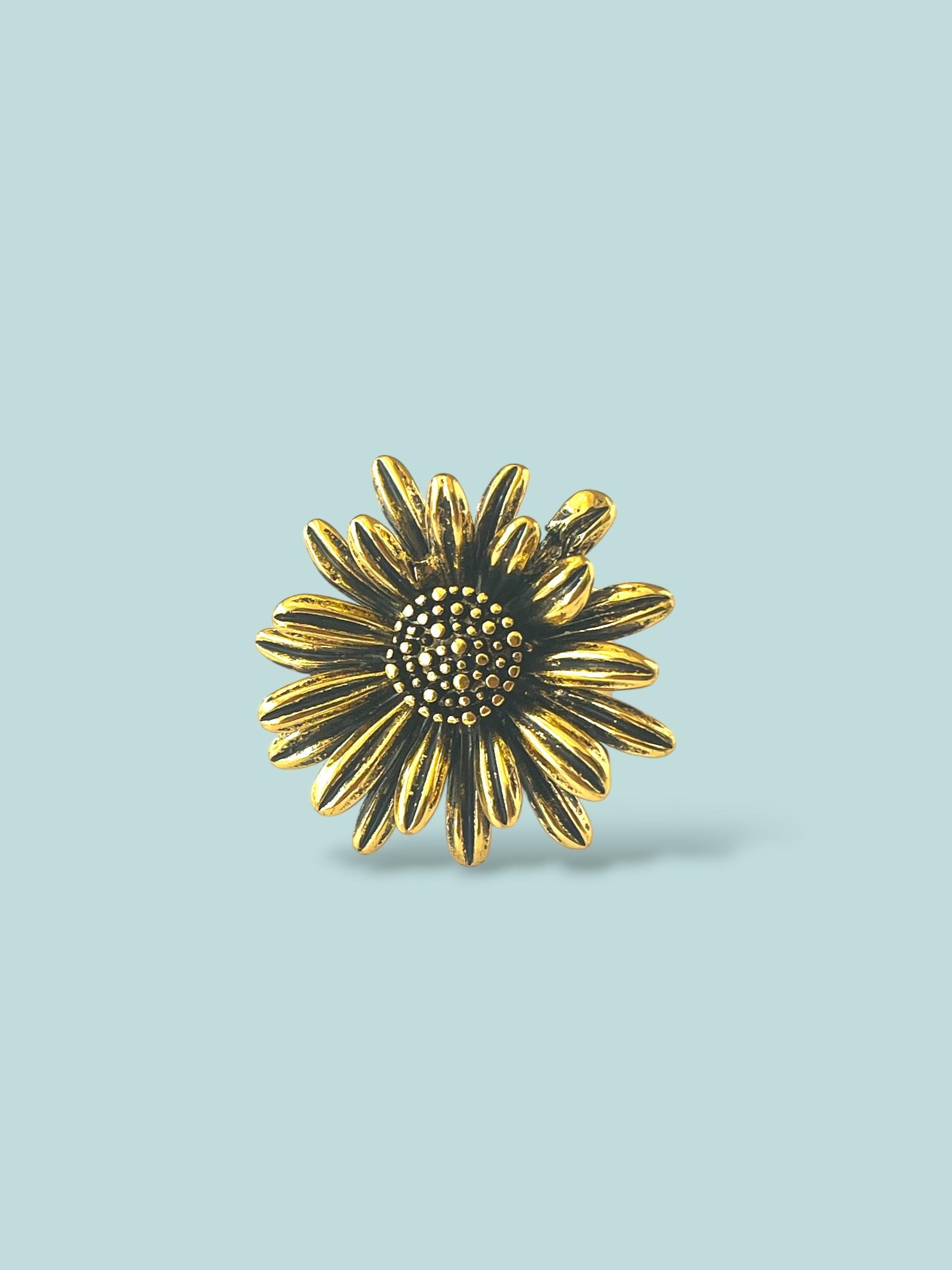 Ayçiçeği Çiçek Tasarım Eskitme Gold Yüzük
