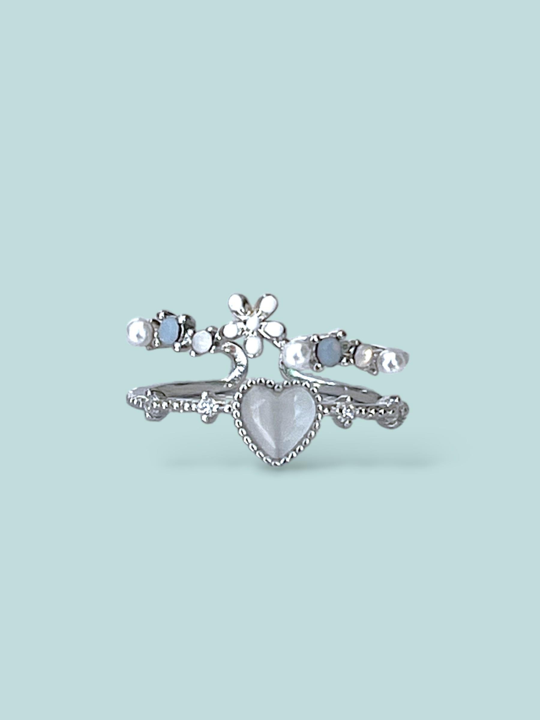 Taş Detaylı Çiçek Kalp Tasarım Silver Yüzük